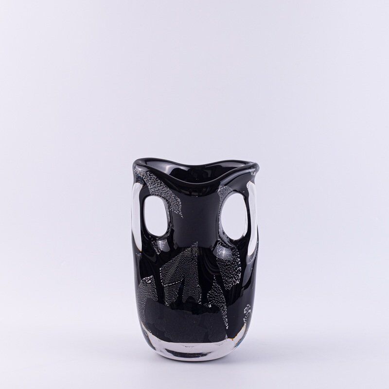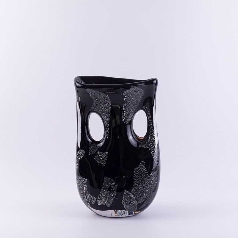 Bold, elegant, and artfully sculpted — this modern black glass vase set brings an avant-garde twist to home décor. Featuring an eye-catching cut-out design and shimmering silver foil textures, each vase is a perfect fusion of form and function.