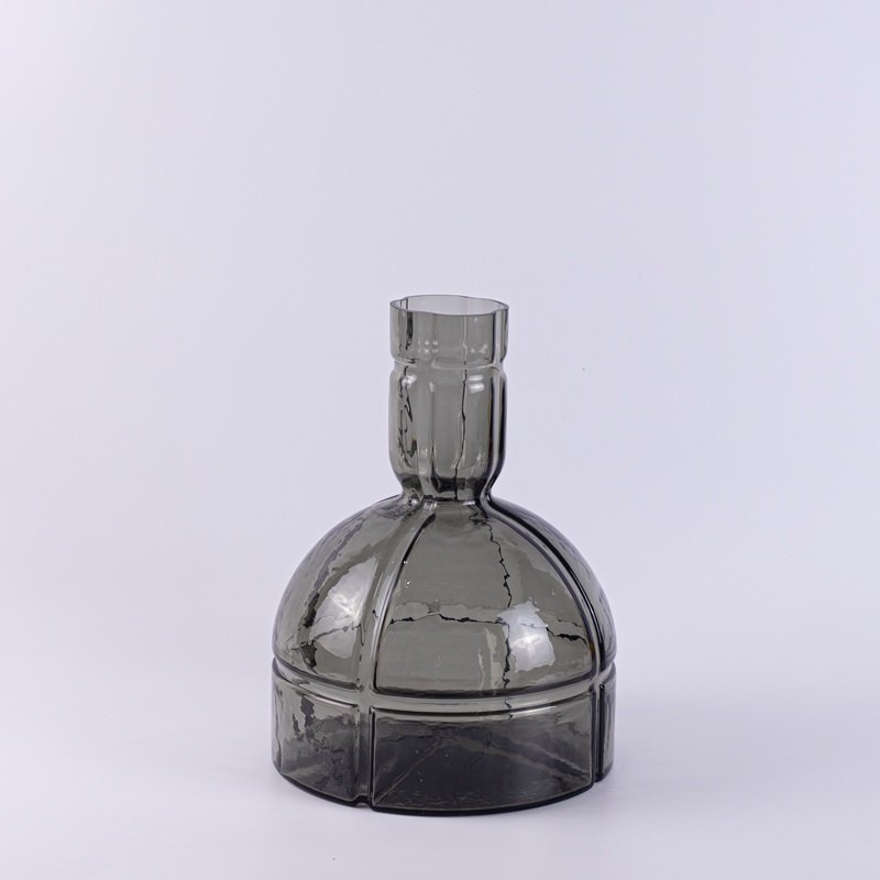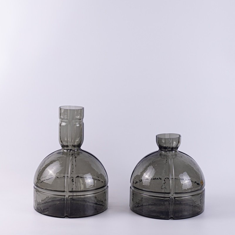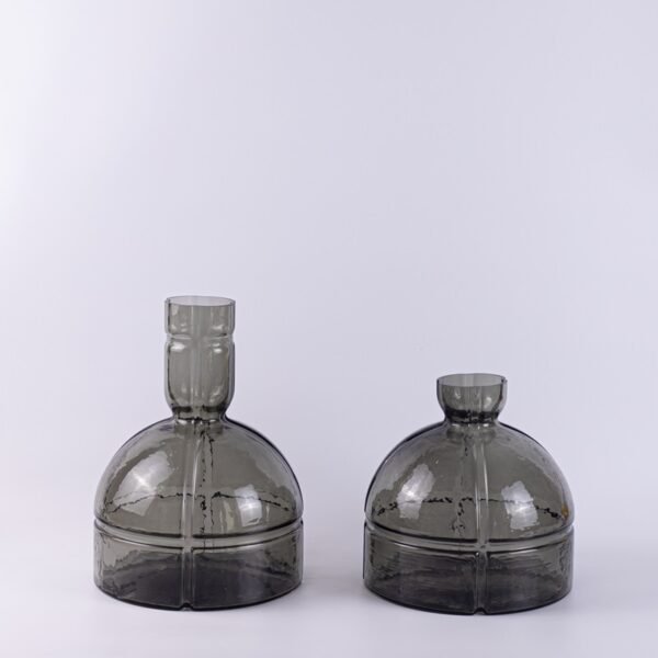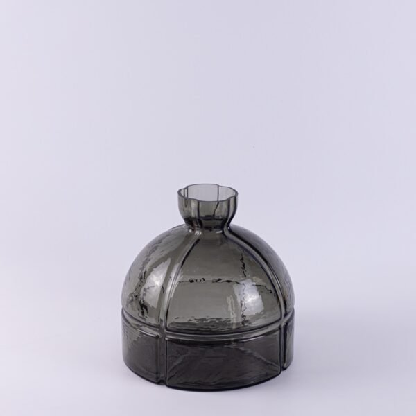 Sleek, structured, and refreshingly modern — this geometric glass vase set brings a bold architectural edge to your home decor. Crafted from smoke grey glass, each vase features a distinctive dome-shaped body with vertical and horizontal ribbing, giving it an industrial yet refined feel.